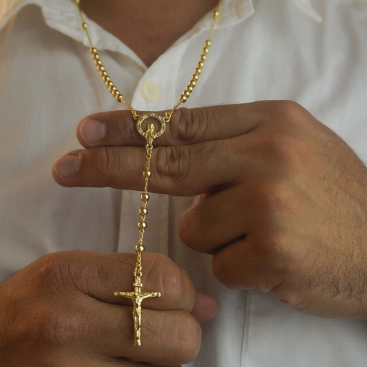 Nuestros rosarios y camándulas están cuidadosamente elaborados, fusionando tradición y espiritualidad con un diseño elegante. Cada pieza ha sido creada con materiales de alta calidad, donde el oro se funde y se aplican tres baños de oro para asegurar un brillo duradero y un acabado impecable. Estas joyas no solo acompañan momentos de fe, sino que también destacan por su belleza y detalle.